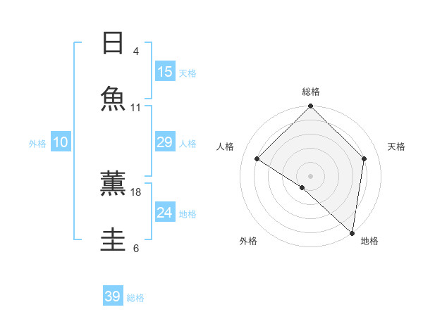 日魚 薫圭さんの総格は39画の5点!