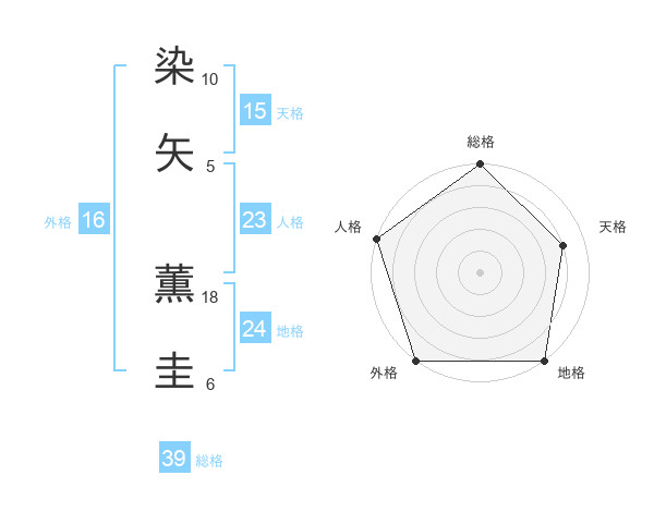 染矢 薫圭さんの総格は39画の5点!