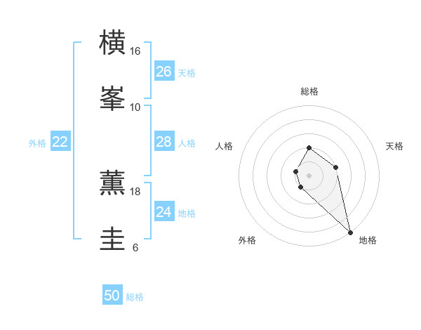 横峯 薫圭さんの総格は50画の2点!