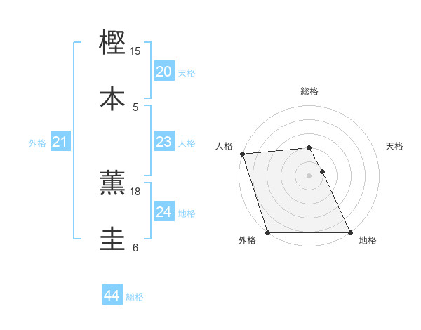 樫本 薫圭さんの総格は44画の2点!