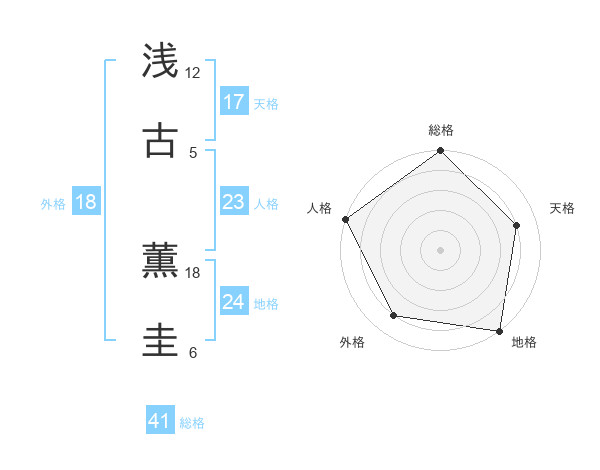 浅古 薫圭さんの地格は24画の5点!
