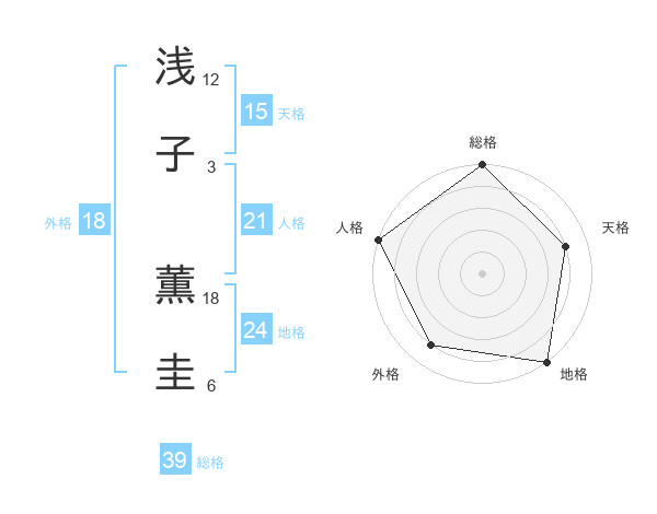 浅子 薫圭さんの総格は39画の5点!