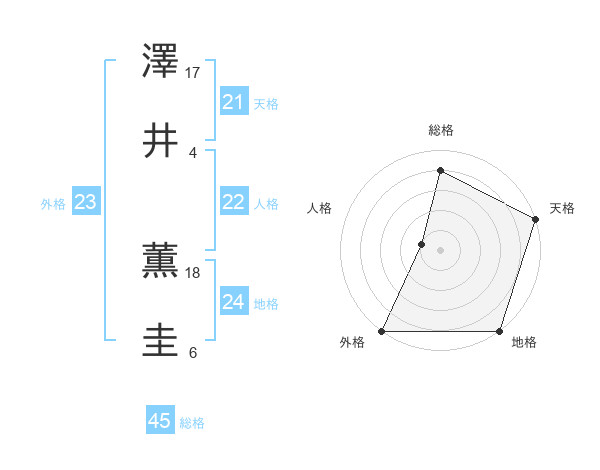 澤井 薫圭さんの総格は45画の4点!