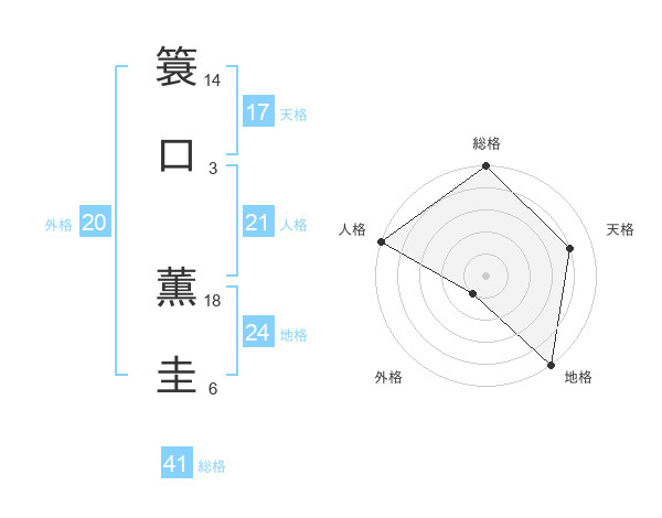 簑口 薫圭さんの外格は20画の1点!