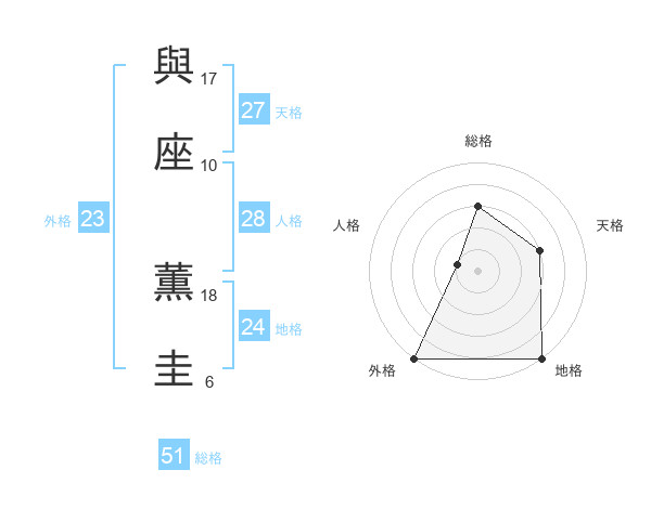 與座 薫圭さんを姓名の画数から五運を鑑定