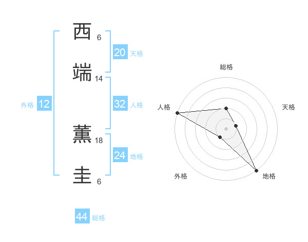 西端 薫圭さんの総格は44画の2点!