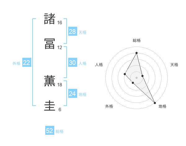 諸冨 薫圭さんを姓名の画数から五運を鑑定
