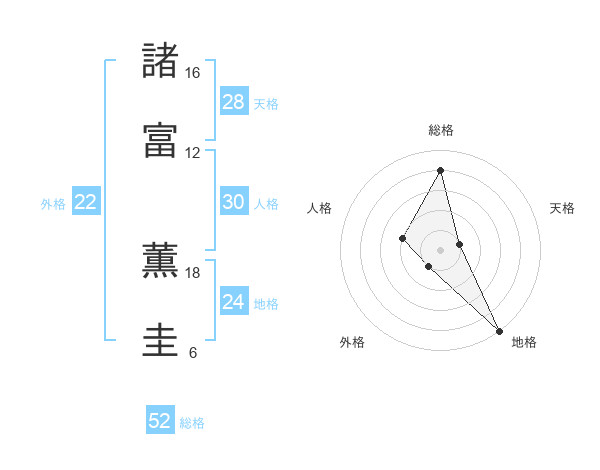 諸富 薫圭さんの外格は22画の1点!