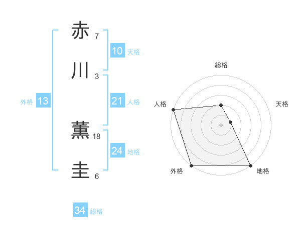 赤川 薫圭さんの総格は34画の2点!