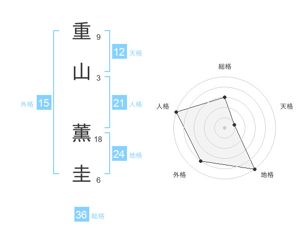 重山 薫圭さんの地格は24画の5点!