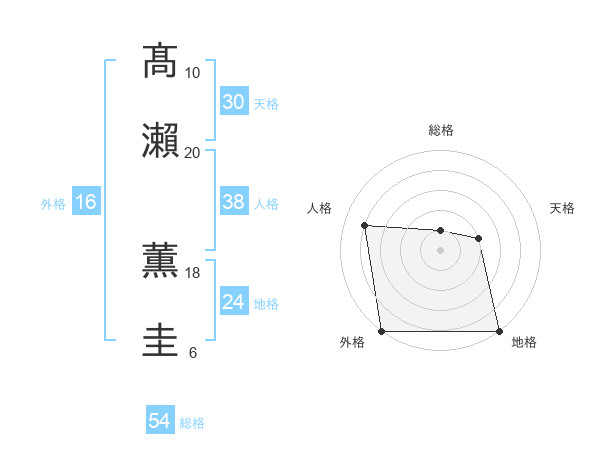 髙瀨 薫圭さんの総格は54画の1点!
