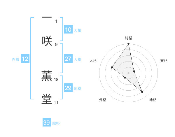 一咲 薫堂さんの総格は39画の5点!