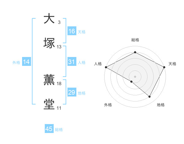 大塚 薫堂さんの総格は45画の4点!