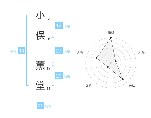 小俣 薫堂さんを姓名の画数から五運を鑑定