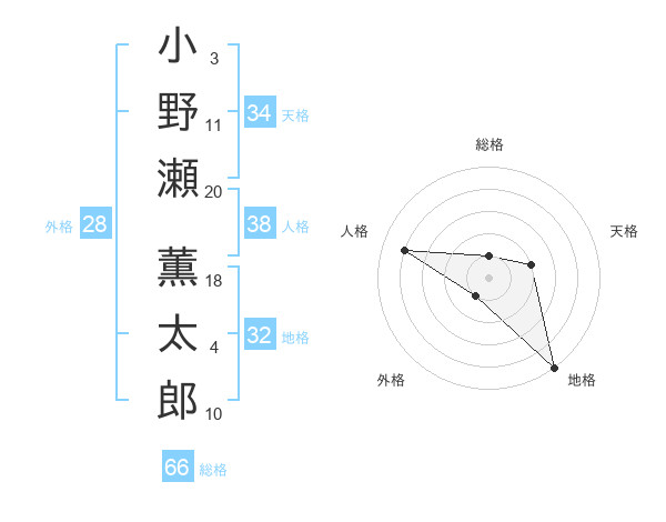 小野瀬 薫太郎さんの総格は66画の1点!