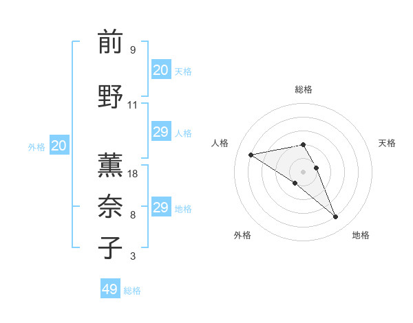 前野 薫奈子さんを姓名の画数から五運を鑑定