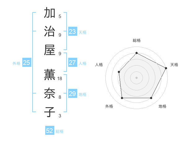 加治屋 薫奈子さんを姓名の画数から五運を鑑定