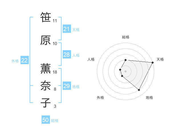 笹原 薫奈子さんを姓名の画数から五運を鑑定