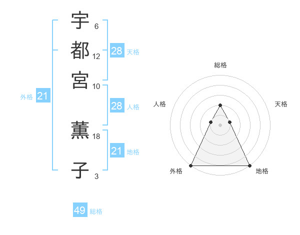 宇都宮 薫子さんの天格は28画の1点!