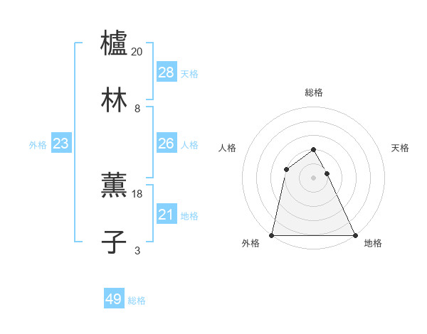 櫨林 薫子さんの外格は23画の5点!