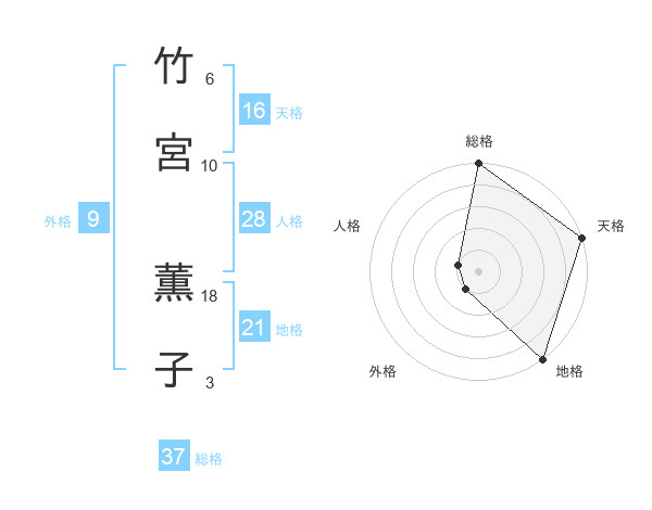 竹宮 薫子さんの総格は37画の5点!