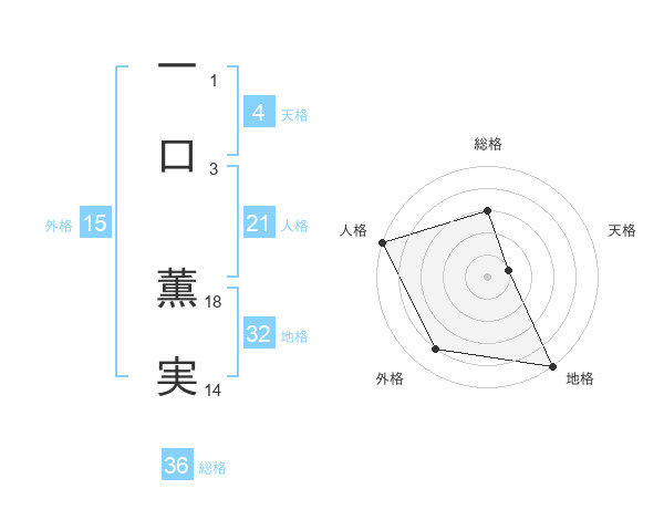 一口 薫実さんの地格は32画の5点!