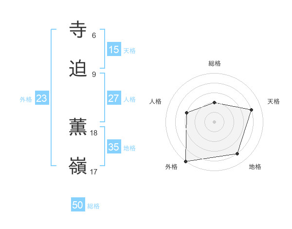 寺迫 薫嶺さんを姓名の画数から五運を鑑定