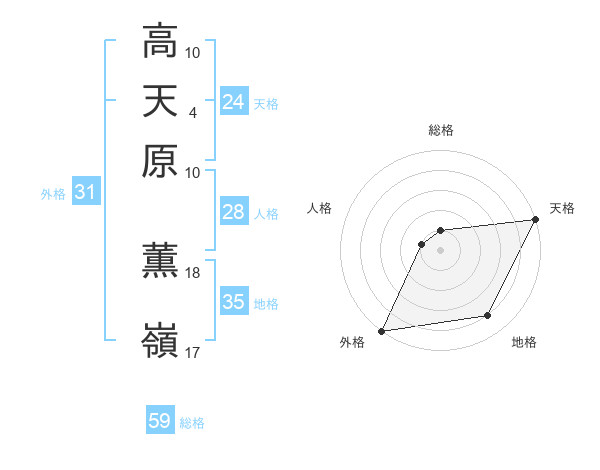 高天原 薫嶺さんの総格は59画の1点!