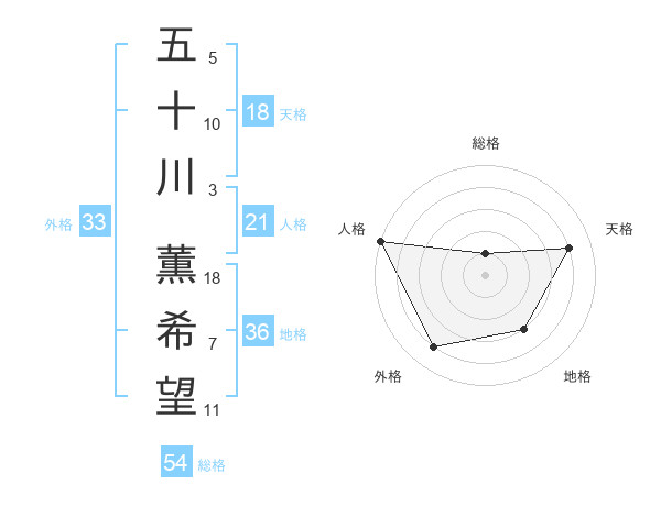 五十川 薫希望さんを姓名の画数から五運を鑑定