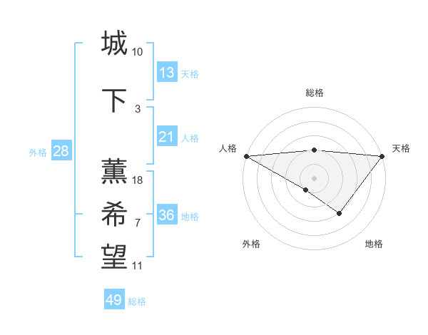城下 薫希望さんを姓名の画数から五運を鑑定
