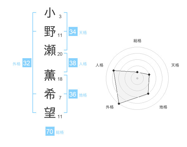 小野瀬 薫希望さんを姓名の画数から五運を鑑定