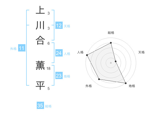 上川合 薫平さんを姓名の画数から五運を鑑定