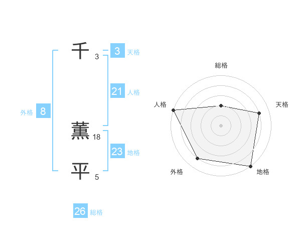 千 薫平さんの総格は26画の2点!