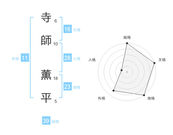 寺師 薫平さんの総格は39画の5点!