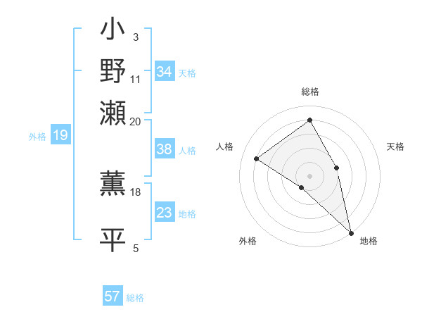 小野瀬 薫平さんを姓名の画数から五運を鑑定