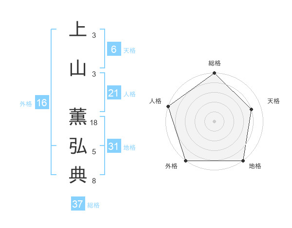 上山 薫弘典さんを姓名の画数から五運を鑑定