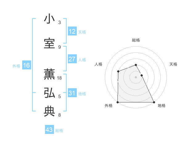 小室 薫弘典さんを姓名の画数から五運を鑑定