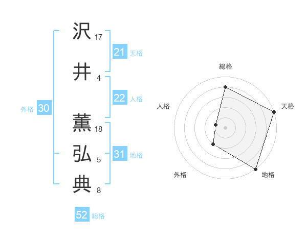 沢井 薫弘典さんを姓名の画数から五運を鑑定