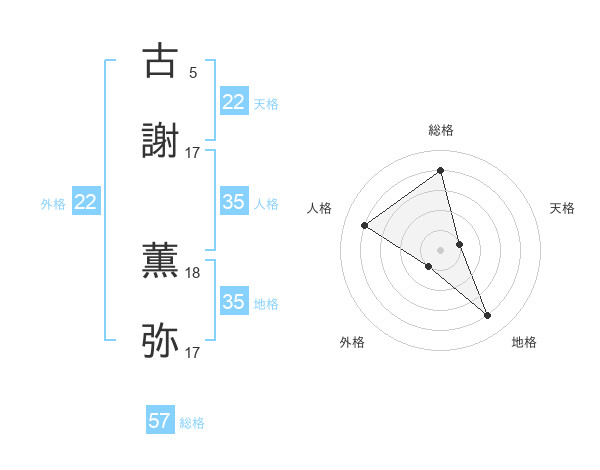 古謝 薫弥さんを姓名の画数から五運を鑑定
