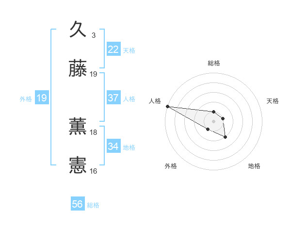 久藤 薫憲さんを姓名の画数から五運を鑑定
