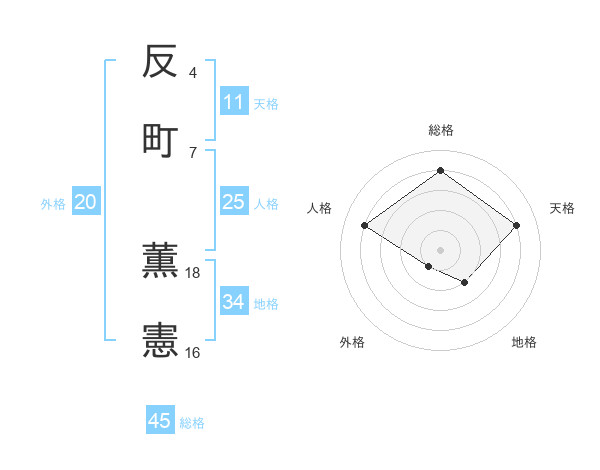 反町 薫憲さんの総格は45画の4点!