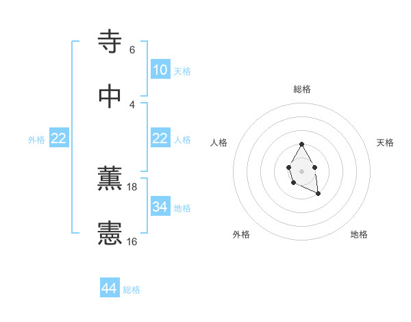 寺中 薫憲さんの総格は44画の2点!