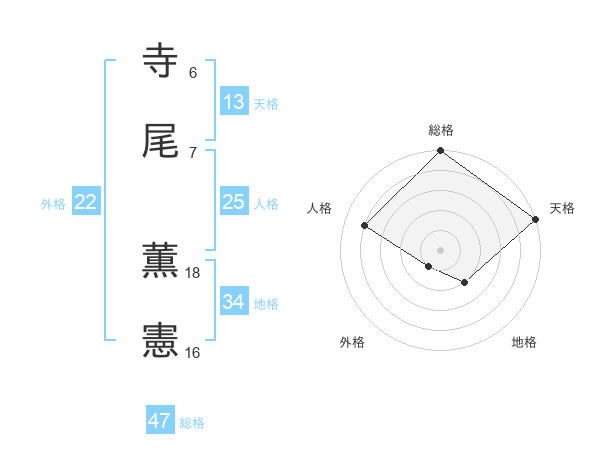 寺尾 薫憲さんの総格は47画の5点!
