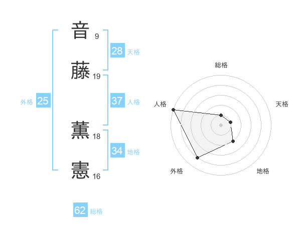 音藤 薫憲さんを姓名の画数から五運を鑑定