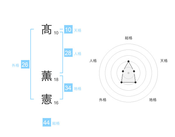 髙 薫憲さんの総格は44画の2点!