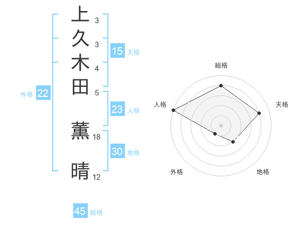 上久木田 薫晴さんを姓名の画数から五運を鑑定