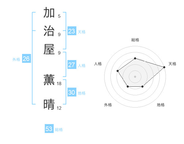 加治屋 薫晴さんを姓名の画数から五運を鑑定