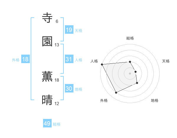 寺園 薫晴さんの総格は49画の2点!