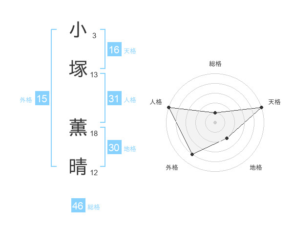 小塚 薫晴さんを姓名の画数から五運を鑑定