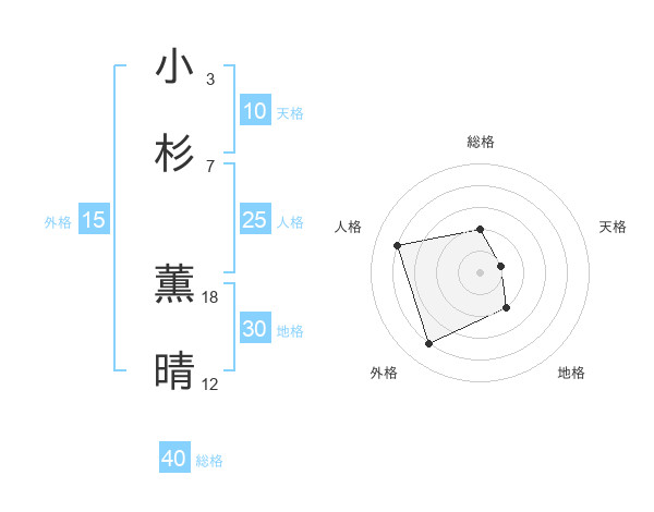 小杉 薫晴さんを姓名の画数から五運を鑑定